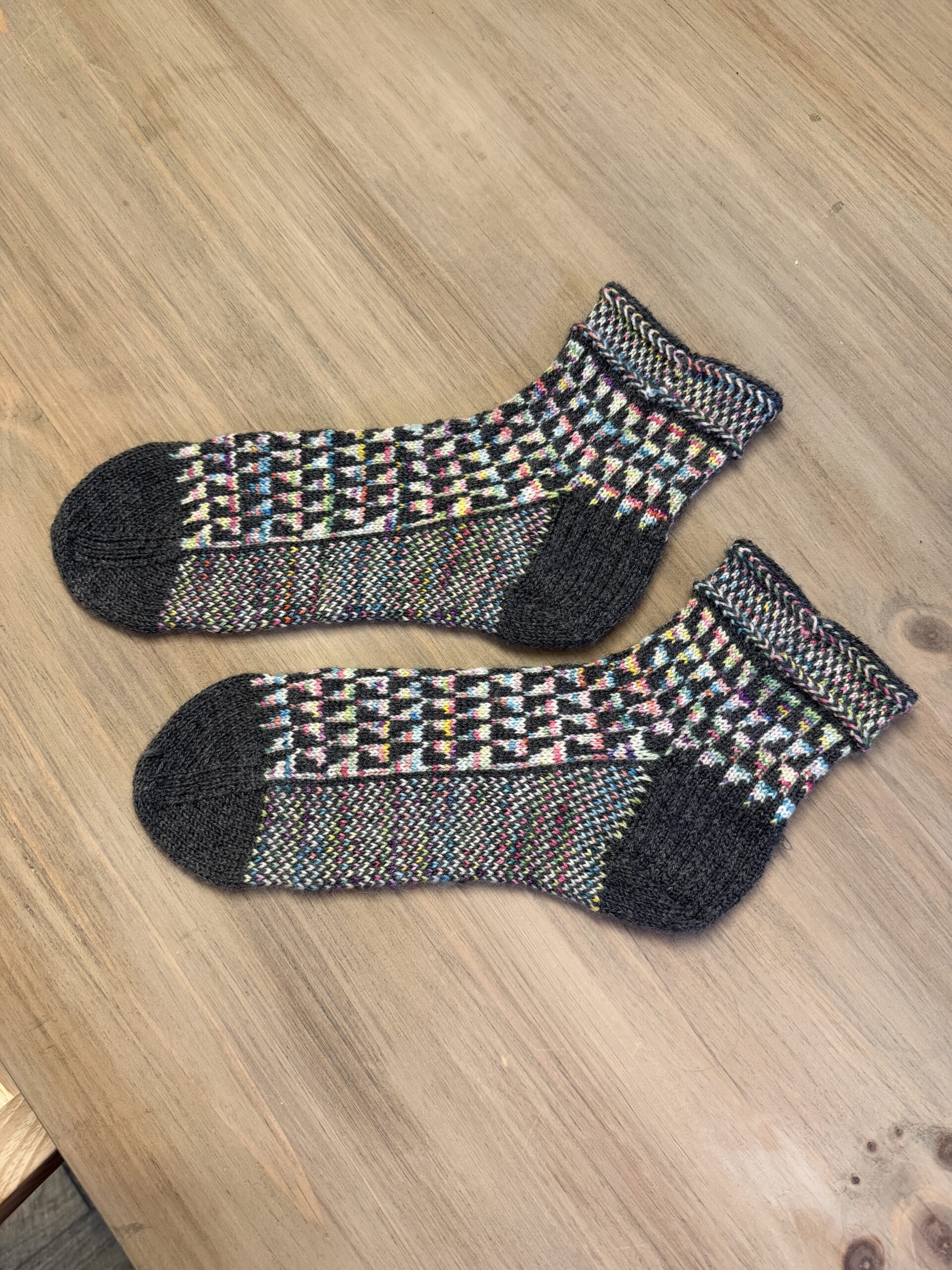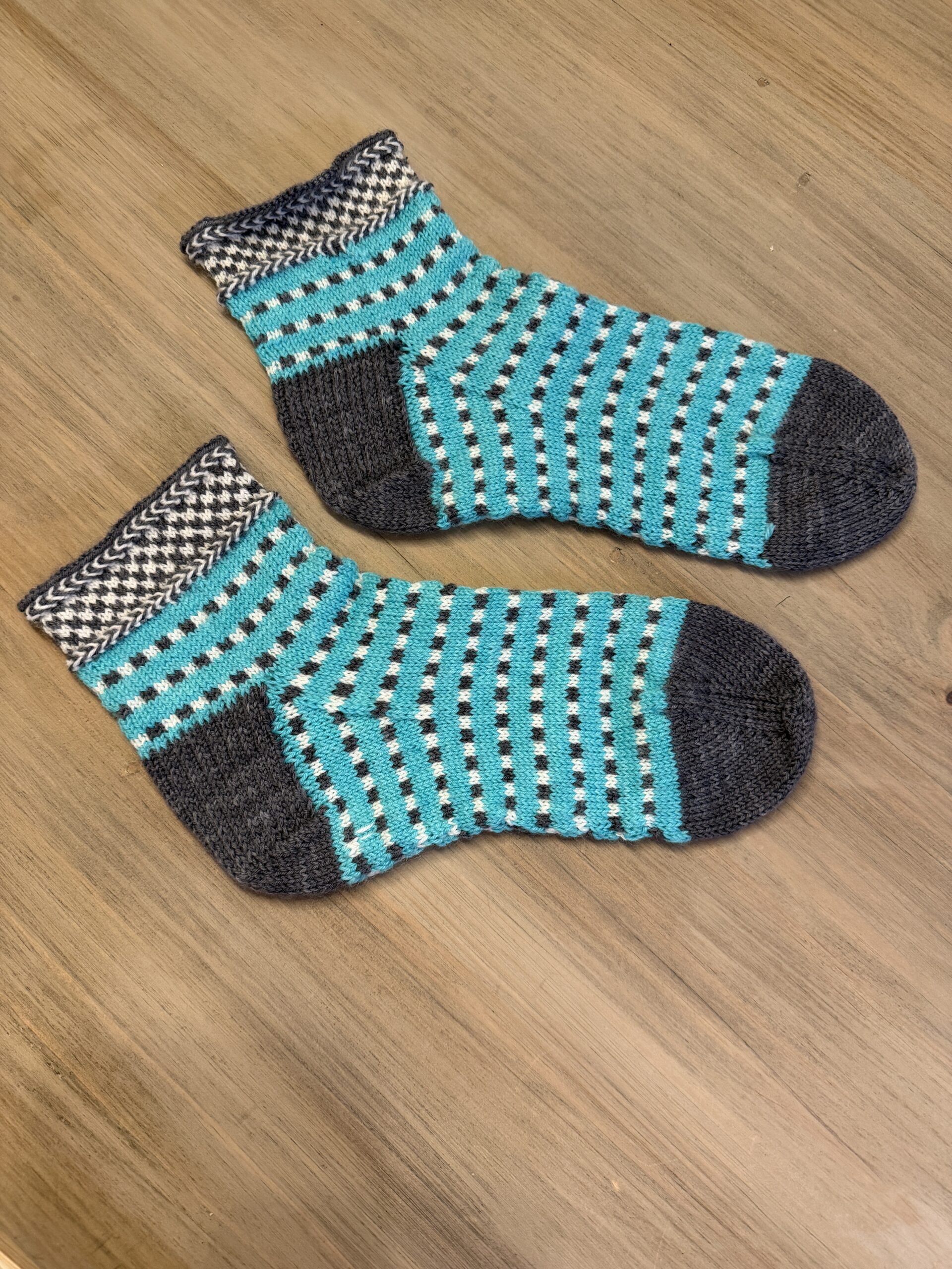 Yarn: Chaski sock yarn in “Last Moment of Winter 1711” and Indigo Quail sock yarn in Color 61